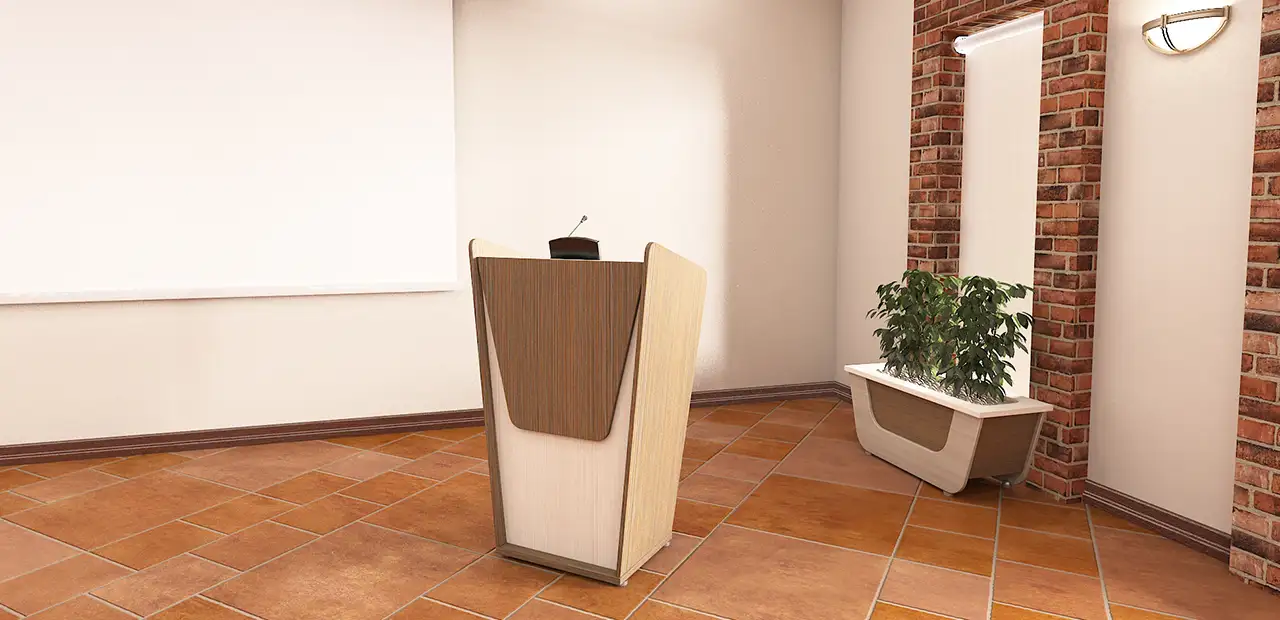 تریبون اینترست ، طراحی و ساخته شده توسط شرکت مبلمان اداری آبادیس از جنس MDF در ترکیب رنگی مختلف ، با قیمت مناسب ، محصولی با کیفیت و ضمانت 15 ماهه . مناسب برای سالن همایش میباشد . یکی از مهمترین طراحیها در مبلمان اداری ، برای طراحی سالن همایش و سخنرانی ادارهها است . تریبون اینترست ، به منظور سخنرانی اشخاص در ادارهها و سالنهای همایش مختلف طراحی و ساخته شده است . این تریبون دارای دو سطح برای قرارگیری تجهیزات ، لوازم التحریر، متن سخنرانی و … است .