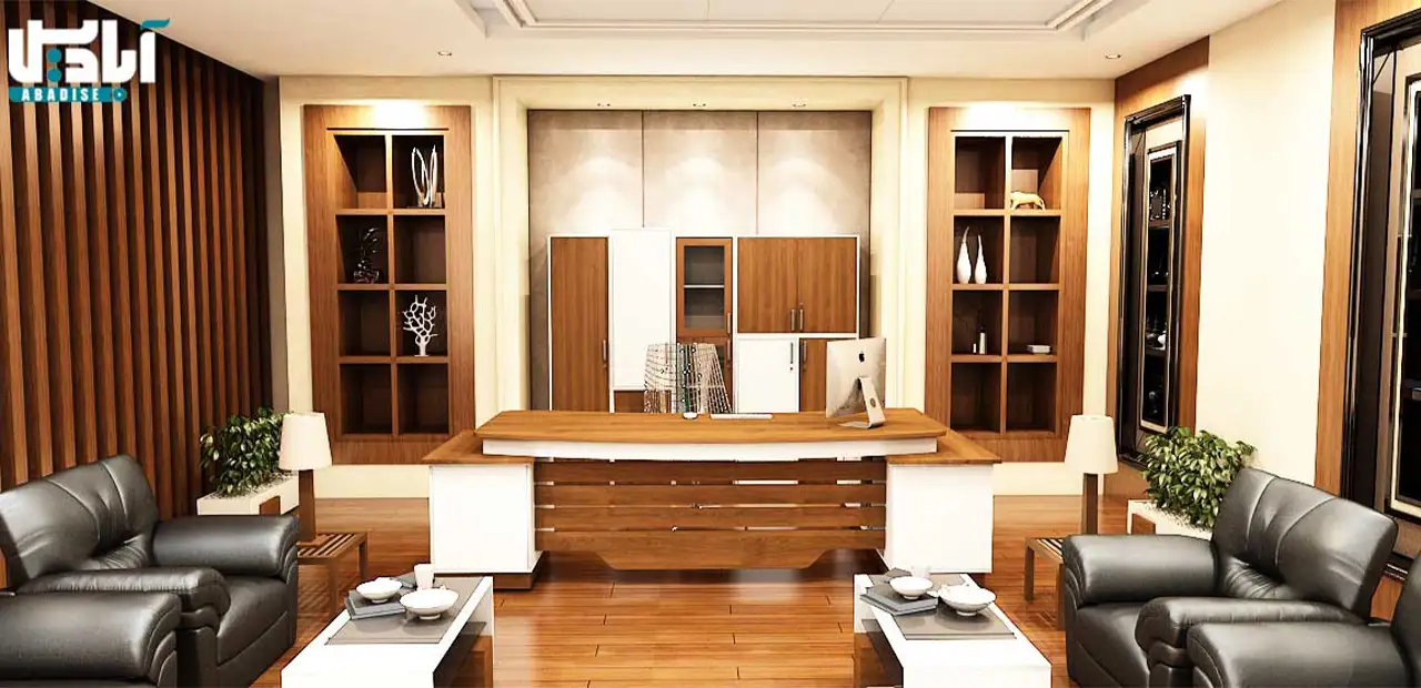 میز مدیریت پارانئو کد 141L ، طراحی و ساخته شده توسط مبلمان اداری آبادیس از جنس MDF در ترکیب رنگی مختلف ، با قیمت مناسب ، محصولی با کیفیت و ضمانت 15 ماهه ، می‌باشد . یکی از مهم‌ترین طراحی‌ها در مبلمان اداری ، طراحی اتاق مدیریت است .