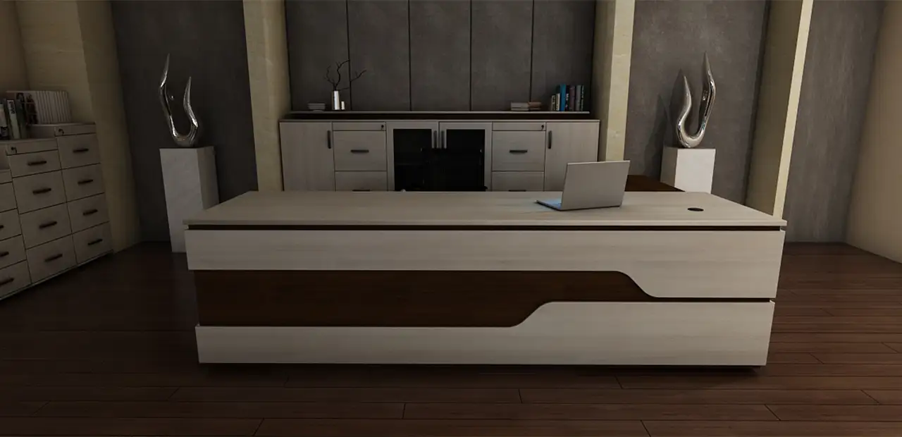 میز مدیریت کاپیکن کد 128L ، طراحی و ساخته شده توسط مبلمان اداری آبادیس از جنس MDF در ترکیب رنگی مختلف ، با قیمت مناسب ، محصولی با کیفیت و ضمانت 15 ماهه ، میباشد . یکی از مهمترین طراحیها در مبلمان اداری ، طراحی اتاق مدیریت است .