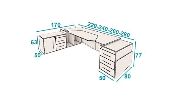 میز مدیریت دیاموند تیپ 117L تمام نیازهای یک مدیر را تامین میکند . زیرا فضای کافی بر روی سطح ( فایل اِل کامل شامل جاکیسی – کمد لوازم شخصی – کشو – کمد بایگانی ) را برای سازماندهی کامل وسایل و ایجاد محیطی منظم آسایش و راحتی مدیر ، کمد و 5 کشو مناسب را جهت قرارگیری لوازم شخصی و مهم ، در این میز ساختهایم .