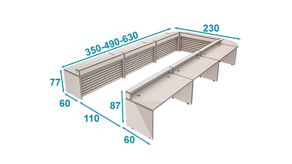 در این راستا ارتفاع میز کنفرانس شیدر تیپ 704U برای صفحه ( 77 ) سانتیمتر و داکت روی میز ( 92 ) سانتیمتر است که مطابق با ارتفاع استاندارد بینالمللی میباشد ، طول و عمق آن به ترتیب ( 350 _ 490 _ 630 ) سانتیمتر و ( برای هر میز 70 _ در مجموع 230 ) سانتیمتر تعیین شده است .